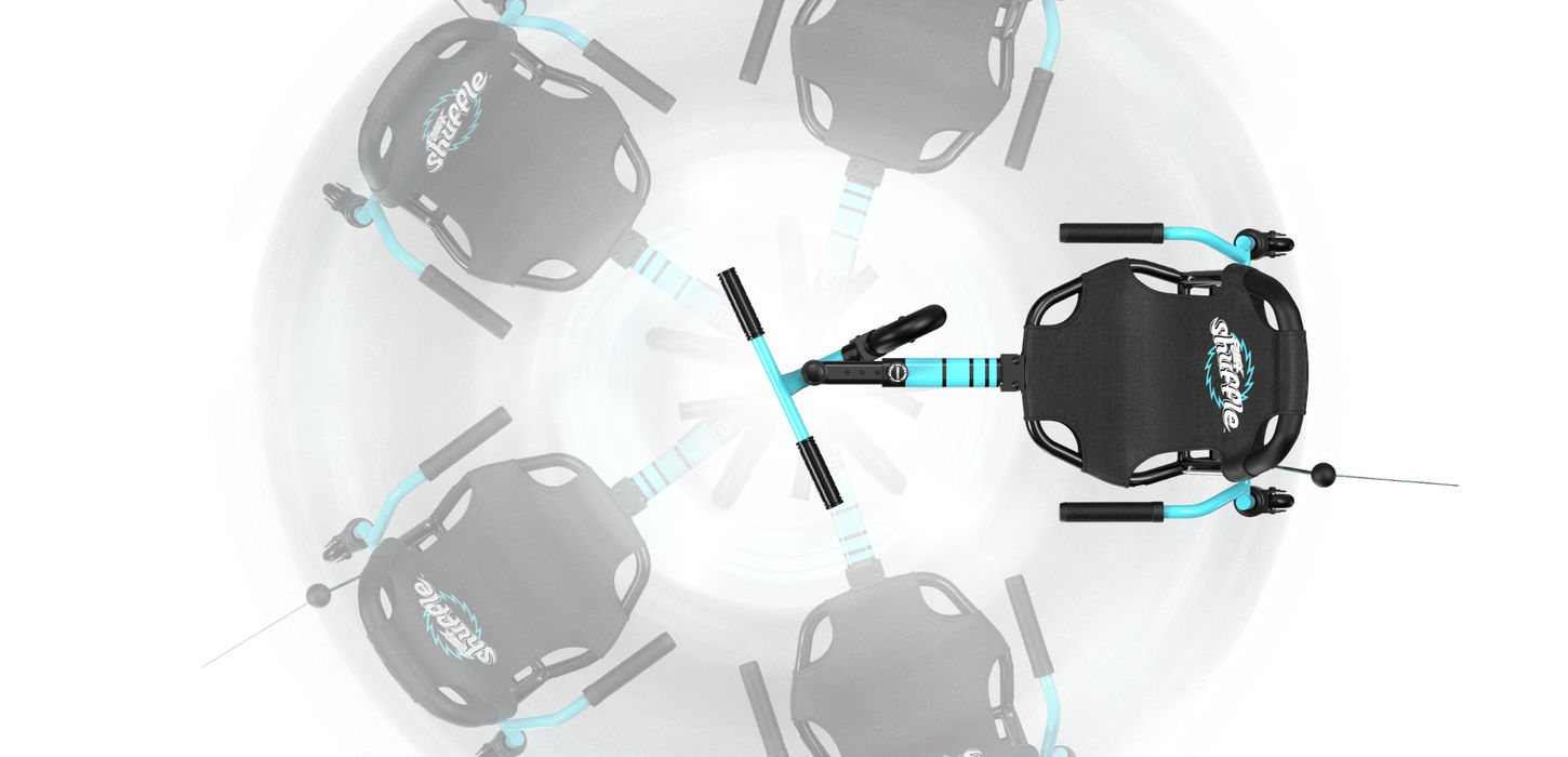 Design: The Crazy Cart Shuffle was crafted to introduce young riders to the signature "drifting" style that Crazy Carts are known for. Unlike other models in the lineup, the Shuffle is non-electric, propelled forward by the rider's feet, which keeps speeds lower and makes mastering the mechanics of drifting simpler. A standout feature is the patented "lift-to-drift bar," which allows riders to pull the bar and change the angle of the rear caster wheels, enabling 360-degree spins in either direction.